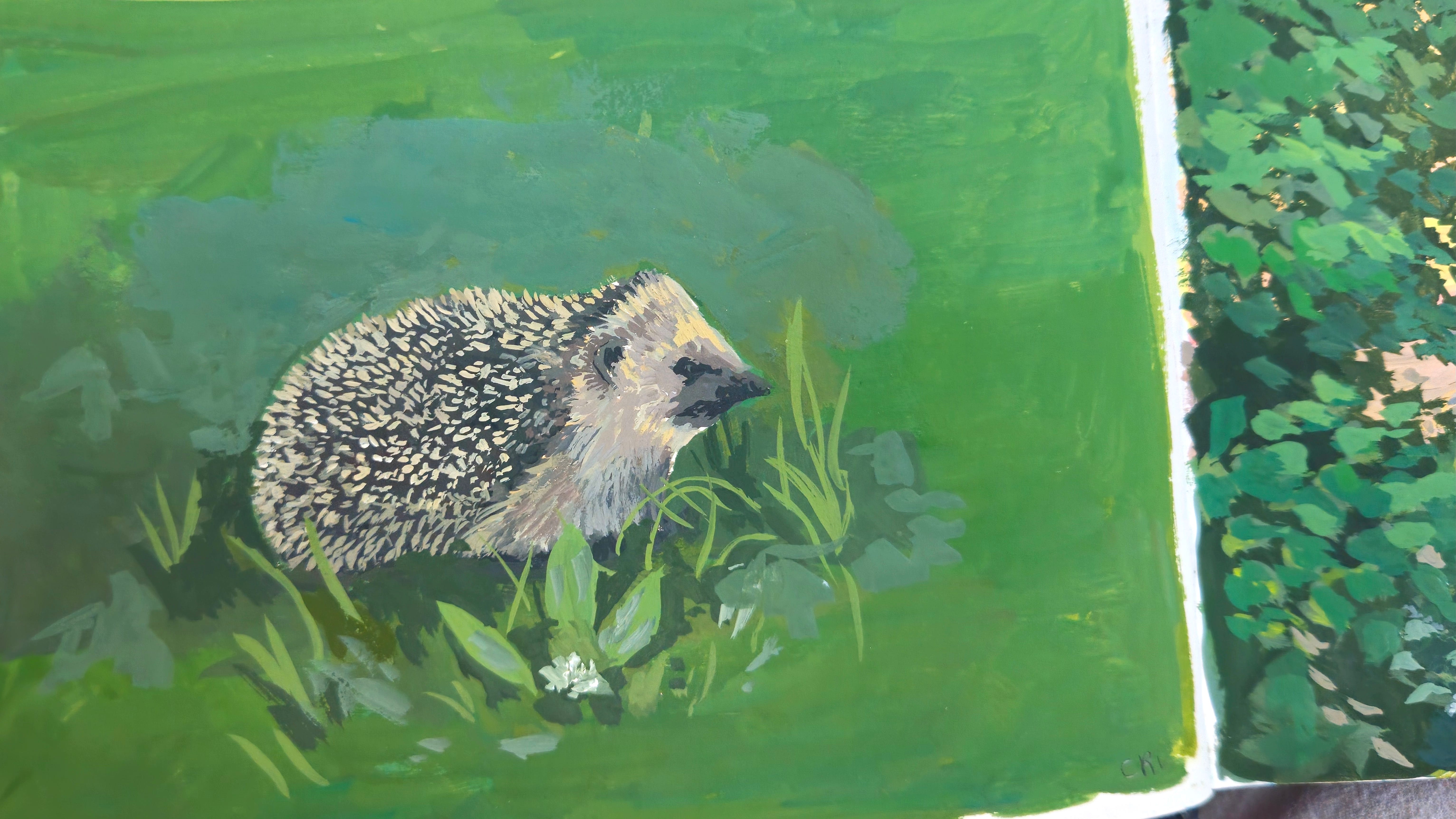 This is a painting of a VERY cute hedgehog that lives in the neighbourhood.