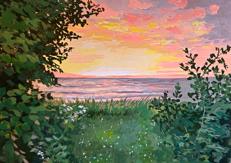 Moving on to a new chapter in my life, I am learning how to paint with Gouache. I’ve only been doing it for a few weeks, and it’s been revolutionary for my inspiration! I have experience with both aquarelle and acrylic paint, but never quite liked it very much for making sketches. Gouache is like an in-between type of paint. The quick coverage of the paint makes it very satisfying to work with.